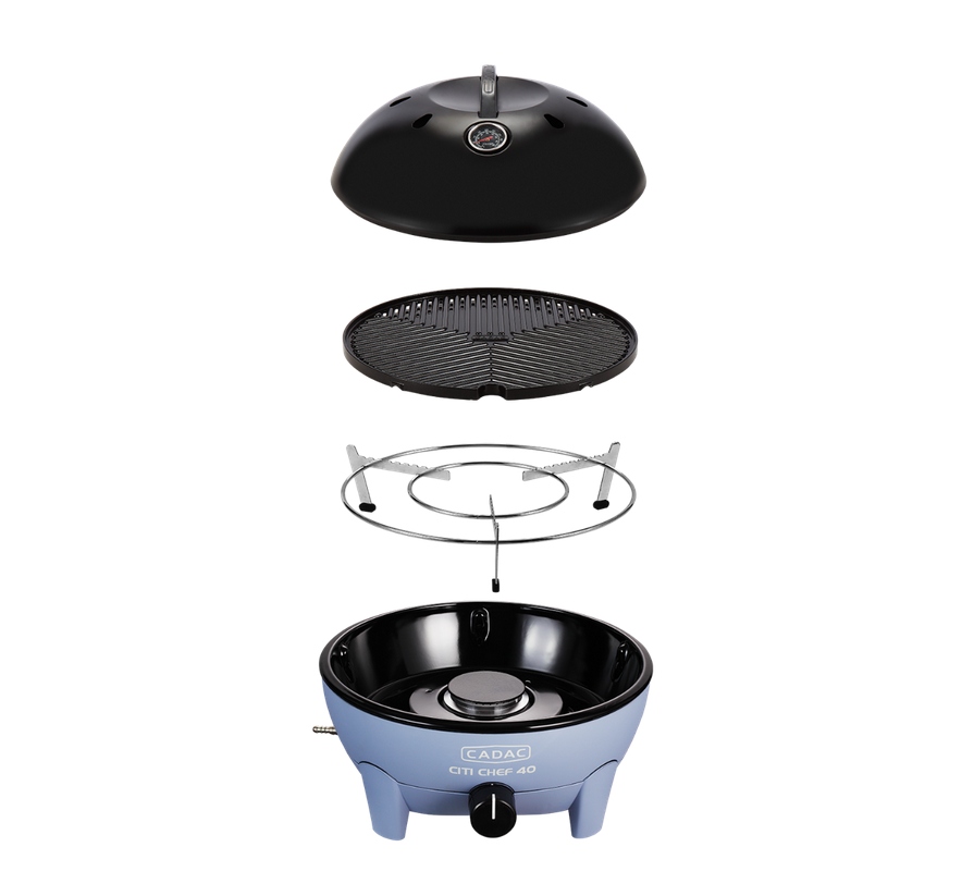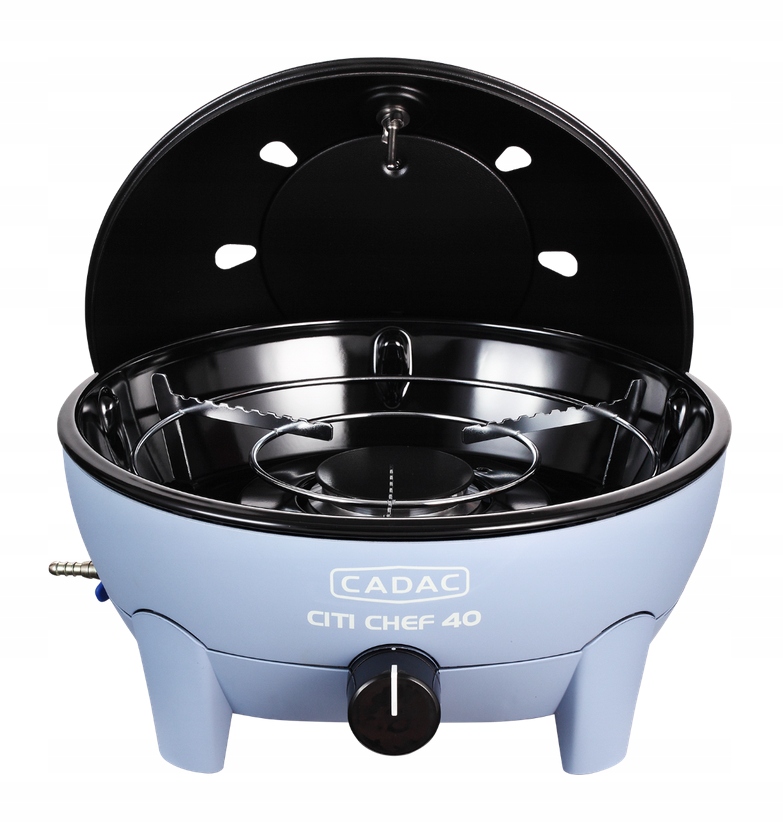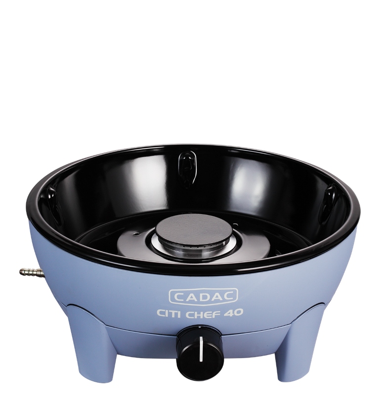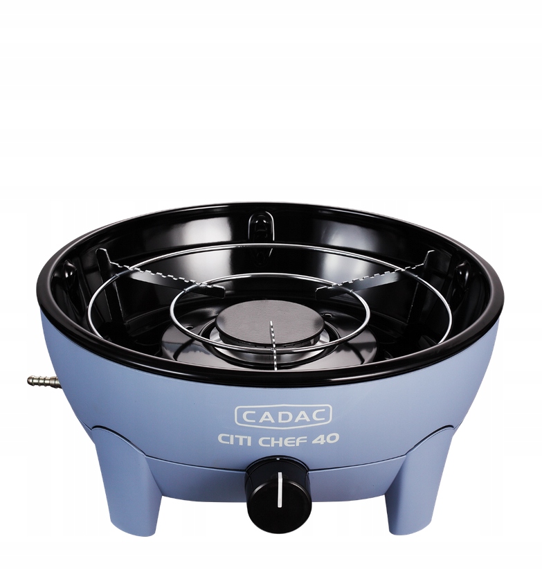 Citi Chef 40 to solidny, kompaktowy I przenośny grill gazowy do postawienia na stole lub szafce. Wyposażony jest w aluminiowy ruszt pokryty ceramiczną powłoką, który bardzo równomiernie rozprowadza ciepło. Zbiornik na tłuszcz znajduje się w zewnętrznej misie, dzięki czemu łatwo jest go wyjąć i umyć. W standardowym wyposażeniu jest podstawka, na której można oprócz garnka, czy czajnika postawiać też inne powierzchnie do gotowania CADAC np. patelnie do paelli lub kamień do pieczenia pizzy.