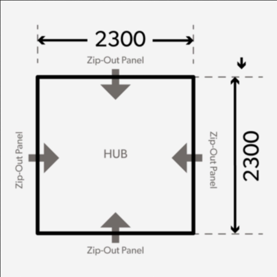 Dostosuj HUB do swoich potrzeb. Zacznij od zadaszenia bazowego i dodaj aneksy, panele siatkowe, panele ścienne i tunele łączące, aby pasowały do SUV-ów i kamperów. Technologia Single Point Inflation AIR Frame i paski Quick Pitch zapewniają, że rozkładanie jest bardzo szybkie i proste.