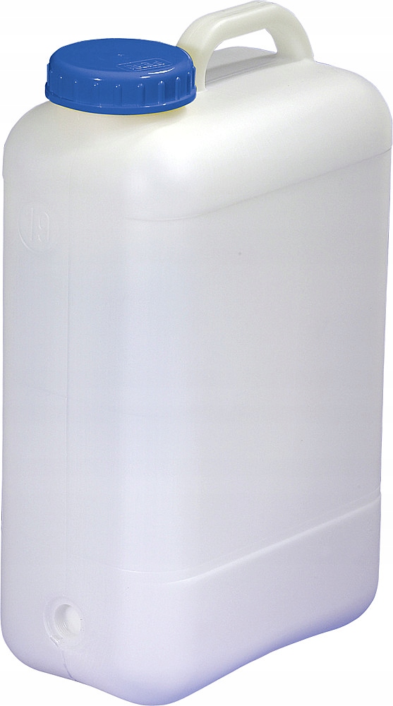 Kanister z szeroką szyjką, uchwytem łukowym, nasadką DIN 96 i gwintem 3/4 ”