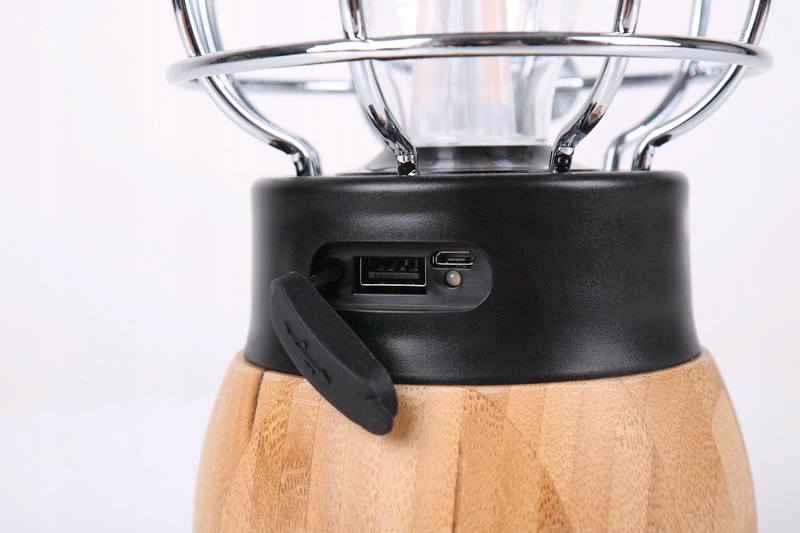 Lampa kempingowa jest wyposażona w kabel ładujący USB i może być również używana jako power bank.