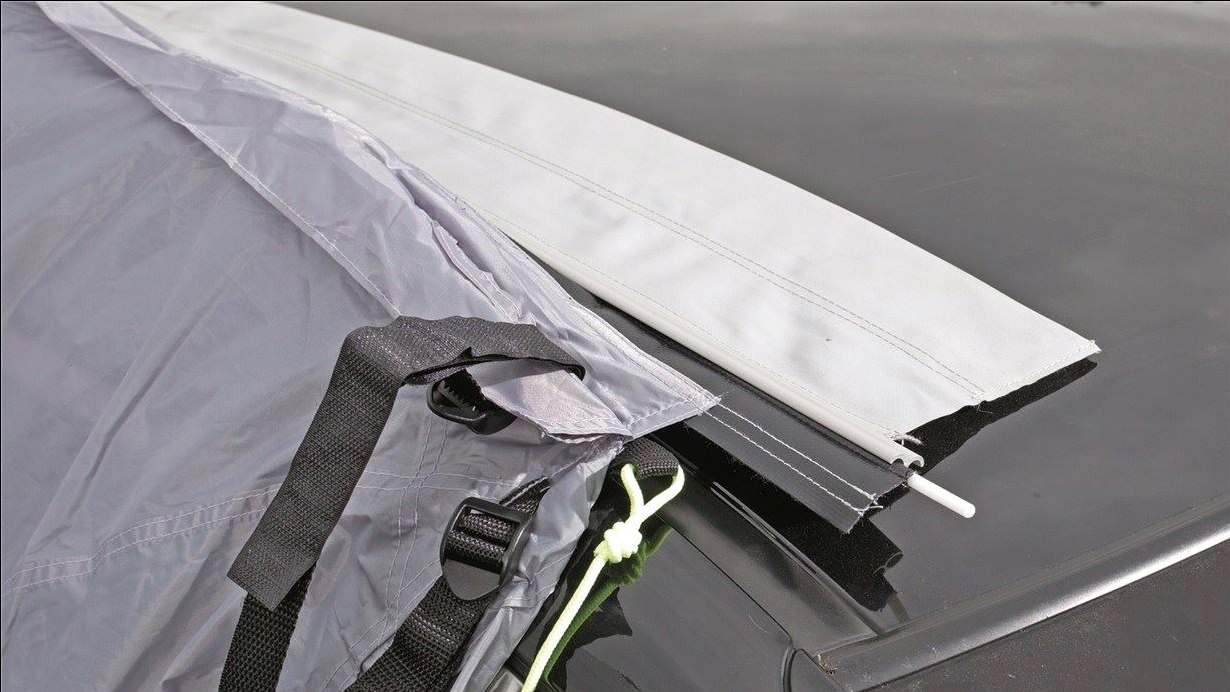 Łączy namiot turystyczny z samochodem