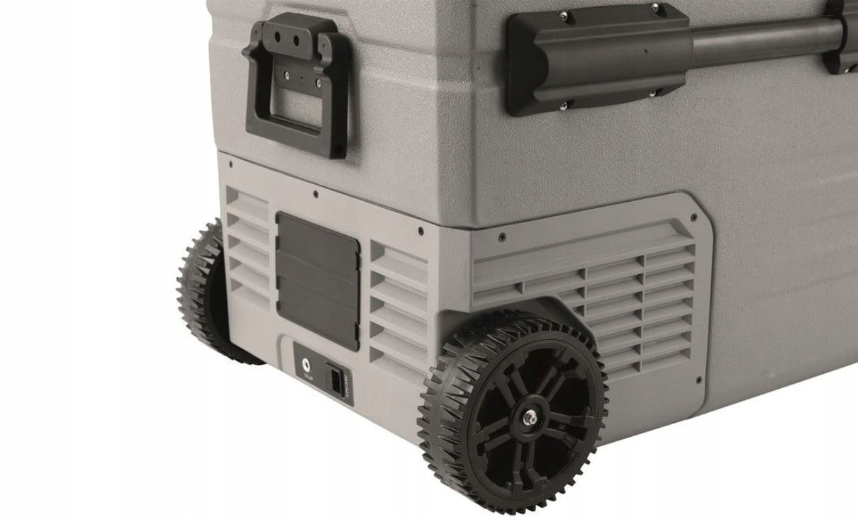 Mobilność zapewniają odporne na przebicie, demontowalne koła, wysuwany uchwyt oraz sprężynowe rączki boczne. Lodówka posiada także zabezpieczenie podnapięciowe i może pracować w przechyleniu do 40°.