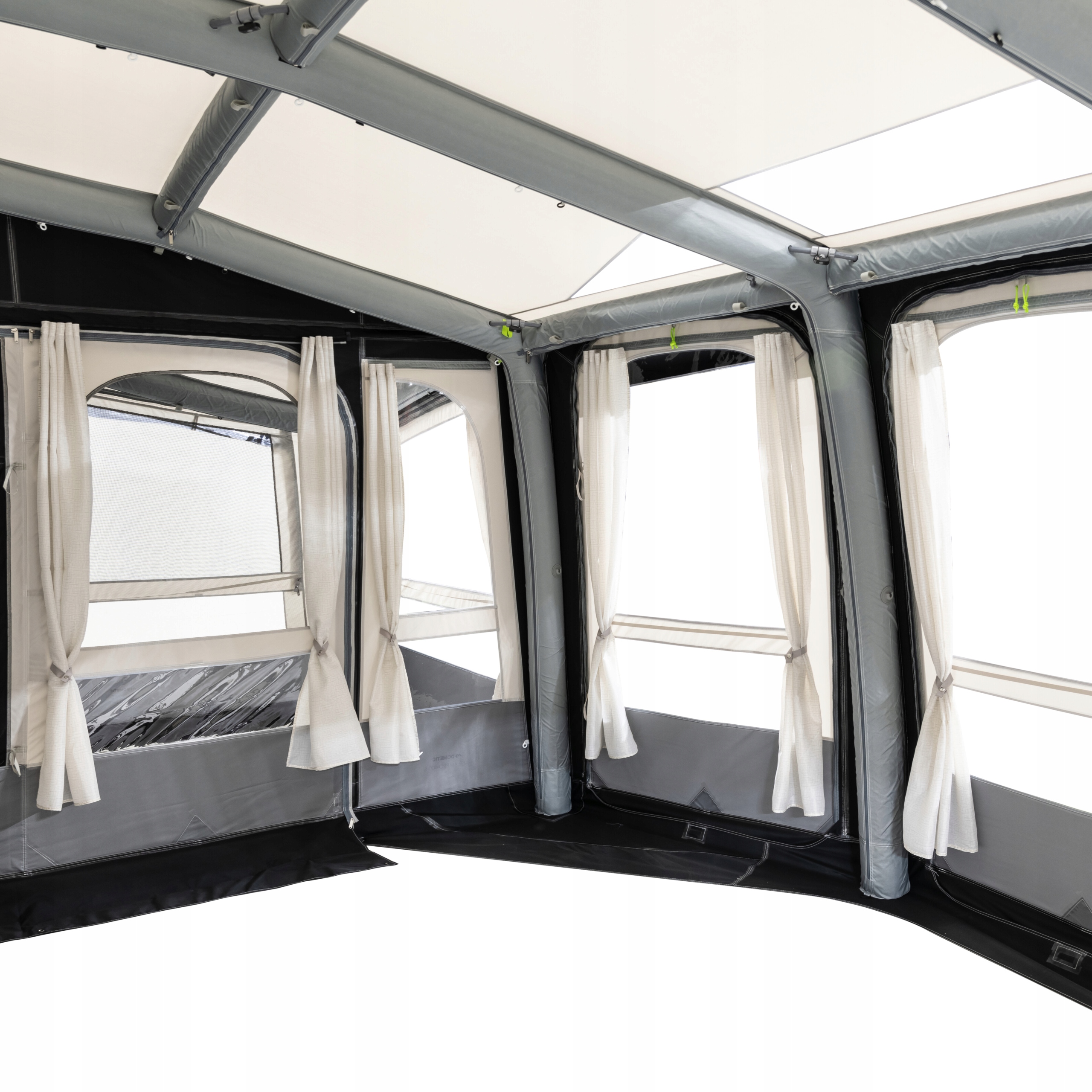 Dzięki ponadczasowemu stylowi, dużej głębokości 3,25 m i zintegrowanemu nadmuchiwanemu zadaszeniu, będziesz obiektem zazdrości na każdym kempingu, na którym się rozbijesz. Duże, pełnowymiarowe okna i świetliki zapewniają piękne widoki w dzień i w nocy.