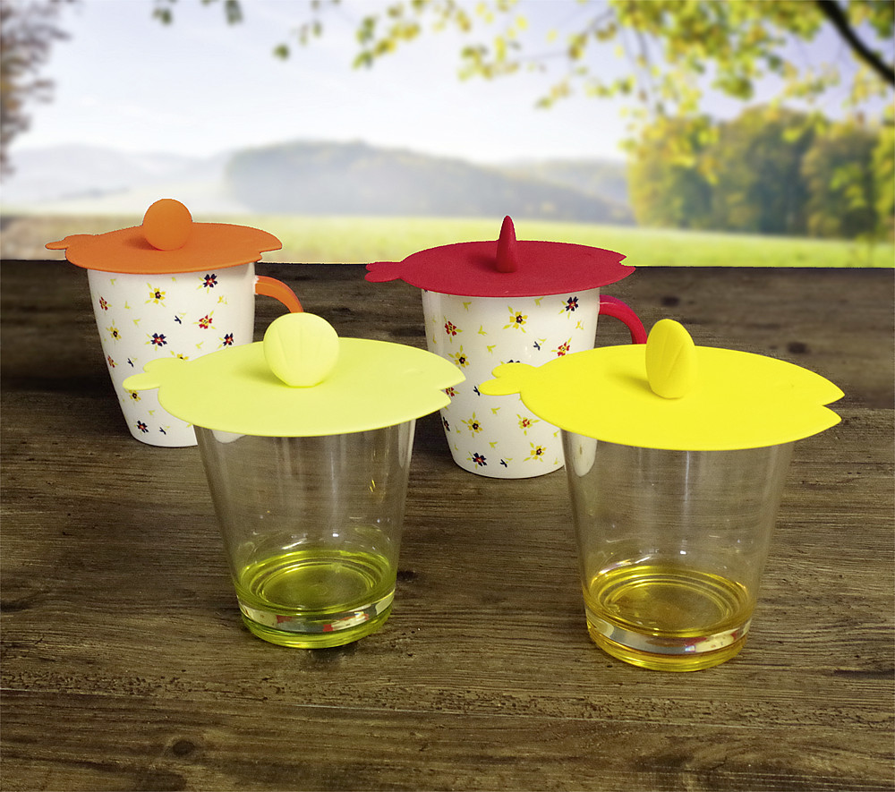 Funkcjonalny zestaw silikonowych pokrywek przeznaczonych do zabezpieczania napojów w kubkach i filiżankach. Produkt skutecznie chroni zawartość przed owadami (m.in. muszkami i osami), a w okresie chłodniejszym ogranicza utratę ciepła, pomagając dłużej utrzymać wysoką temperaturę napojów, takich jak herbata czy gorąca czekolada.