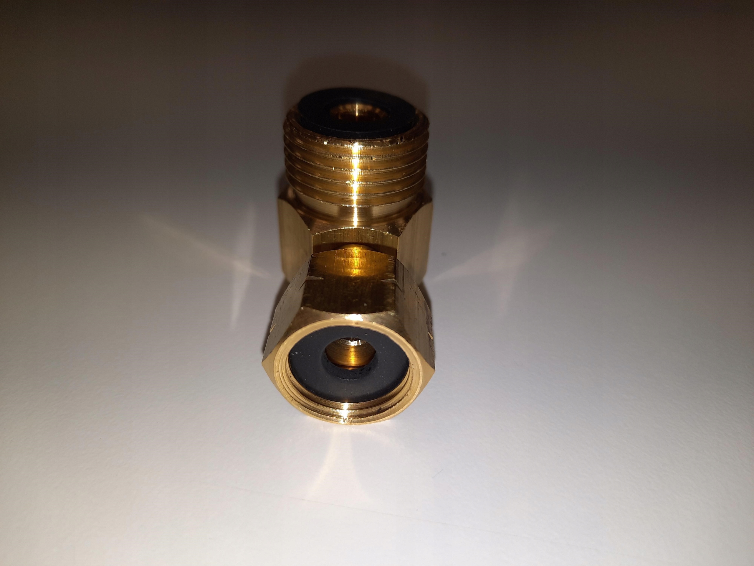 Z jednej strony ma gwint zewnętrzny 1/2" lewy (tzw. GZ 21,8mm - taki jak w butlach domowych 11 kg), z drugiej zaś strony gwint wewnętrzny 3/8" lewy (do nakręcenia na gwint taki, jak na polskich butlach gazowych - turystycznych).