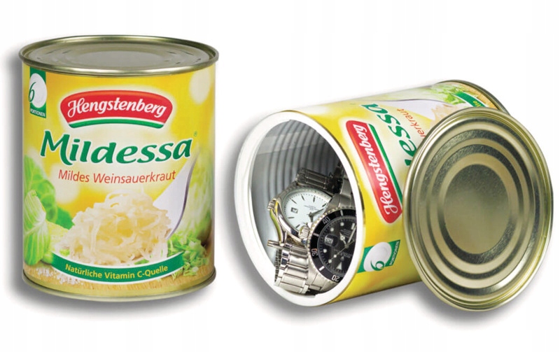 Wysokiej jakości i precyzyjnie wyprodukowana puszka dokładnie według oryginalnego produktu. Pokrywę można łatwo otworzyć za pomocą niewidocznego zamka obrotowego.