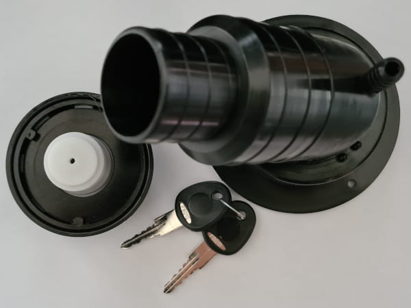 Zewnętrzny wlew do wody renomowanej marki Fawo, przeznaczony do instalacji wodnych w przyczepach kempingowych, kamperach oraz łodziach. Konstrukcja umożliwia bezpieczne i wygodne napełnianie zbiornika wody.