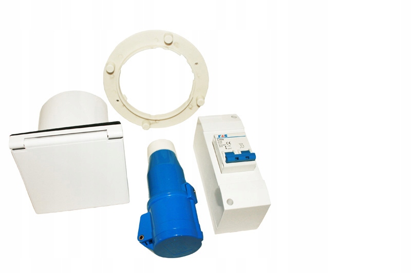 Pakiet modernizacyjny składający się z podwójnego bezpiecznika automatycznego, gniazda zasilającego CEE i złącza CEE.