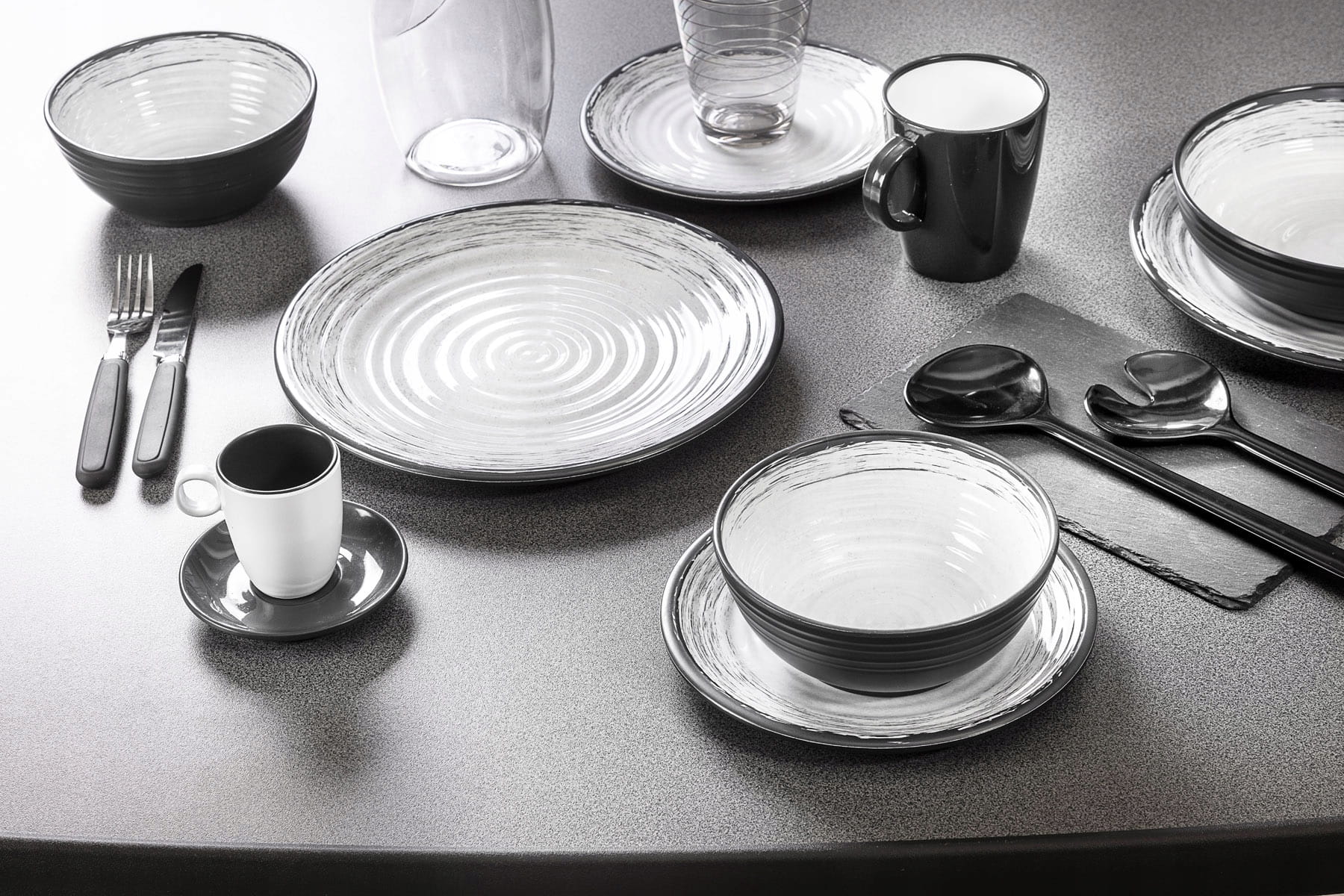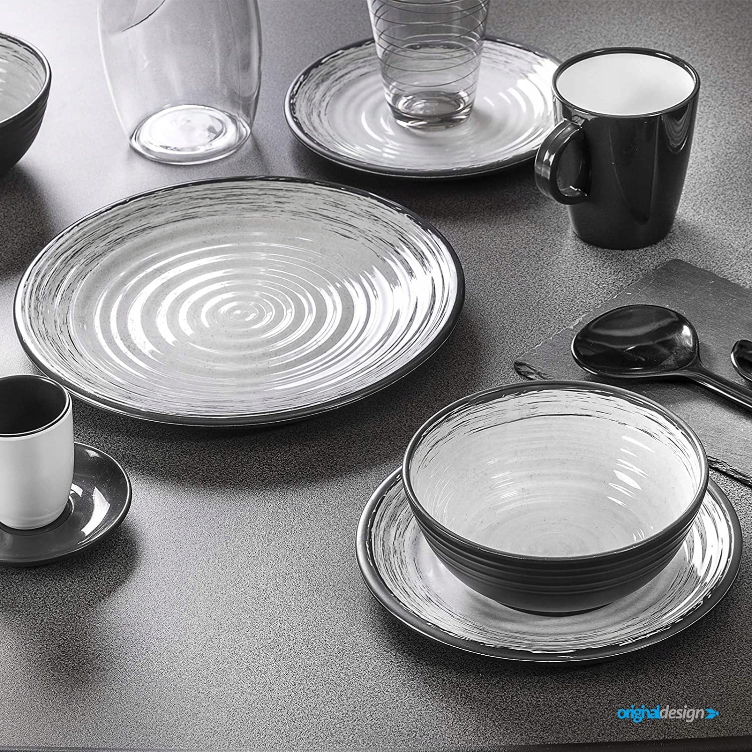 - wykonany z innowacyjnej mieszanki melaminy i minerałów Stone Touch,