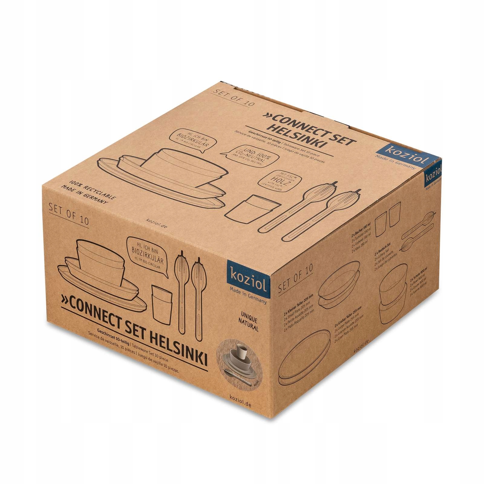 CONNECT SET HELSINKI jest solidny, lekki i można go układać jeden na drugim, dzięki czemu jest nieodzownym towarzyszem pikników, biwaków i wycieczek pieszych.