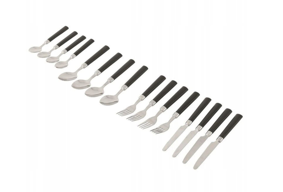 Praktyczny zestaw sztućców idealny na kemping, piknik czy do kampera. Wykonany z wysokiej jakości stali nierdzewnej i plastiku, zapakowany w poręczne etui ułatwiające przechowywanie i transport.